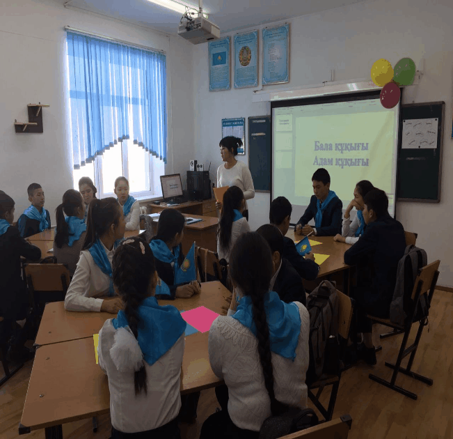 05 декабрь 2018 0 1 2 3 4 5 "Бала құқығы Адам құқығы" тәрбие сағаты Құқық пән мұғалімі Оспанова Айнұр Ерубайқызы 9 сынып оқушыларымен "Бала құқығы Адам құқығы" атты тәрбие сағатын өткізді.
