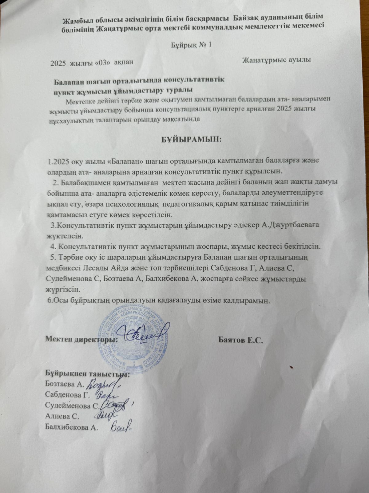 03 февраль 2025 0 1 2 3 4 5 Балапан шағын орталығында консультативтік пункт жұмысын ұйымдастыру туралы