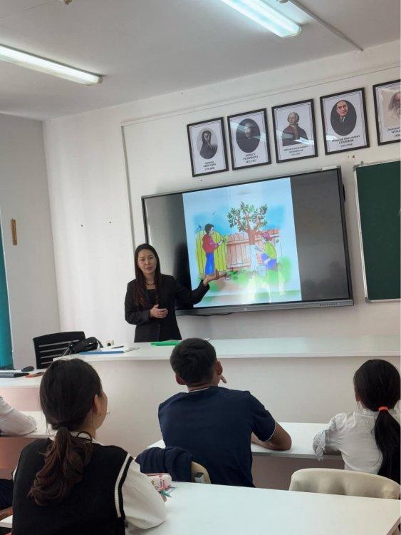 18 апрель 2025 0 1 2 3 4 5 “Еңбек түбі береке” Жаңатұрмыс орта мектебінің 11.04.25ж7-сынып оқушылармен.Сынып жетекшісі: Ш.Байымбетова мен КББ М.Абилдаеваның ұйымдастырумен жоспарға сәйкес “Еңбек түбі береке” тақырыбында танымдық сағатын.Мақсаты: еңбекқорлыққа тәрбиелеу,кәсіби бағдар беру.