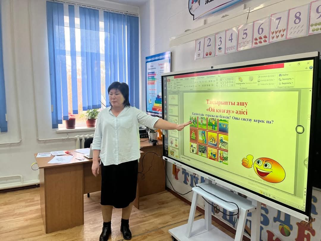 Жаңатұрмыс орта мектебінің 2 сынып жетекшісі Малтаева А дүниетану пәні бойынша "Қауіпсіздік ережелері" тақырыбына ашық сабақ өтті. Бастауыш әдістемелік бірлестігі аясында ұйымдастырылды. Өткен сабақты қайталау мақсатында "Wordwoll" әдісін пайдаланды. Жаңа сабақты "Миға шабуыл" әдісімен бастады. Сабақ барысында Ия/жоқ .Топтастыру әдістерін пайдаланды.