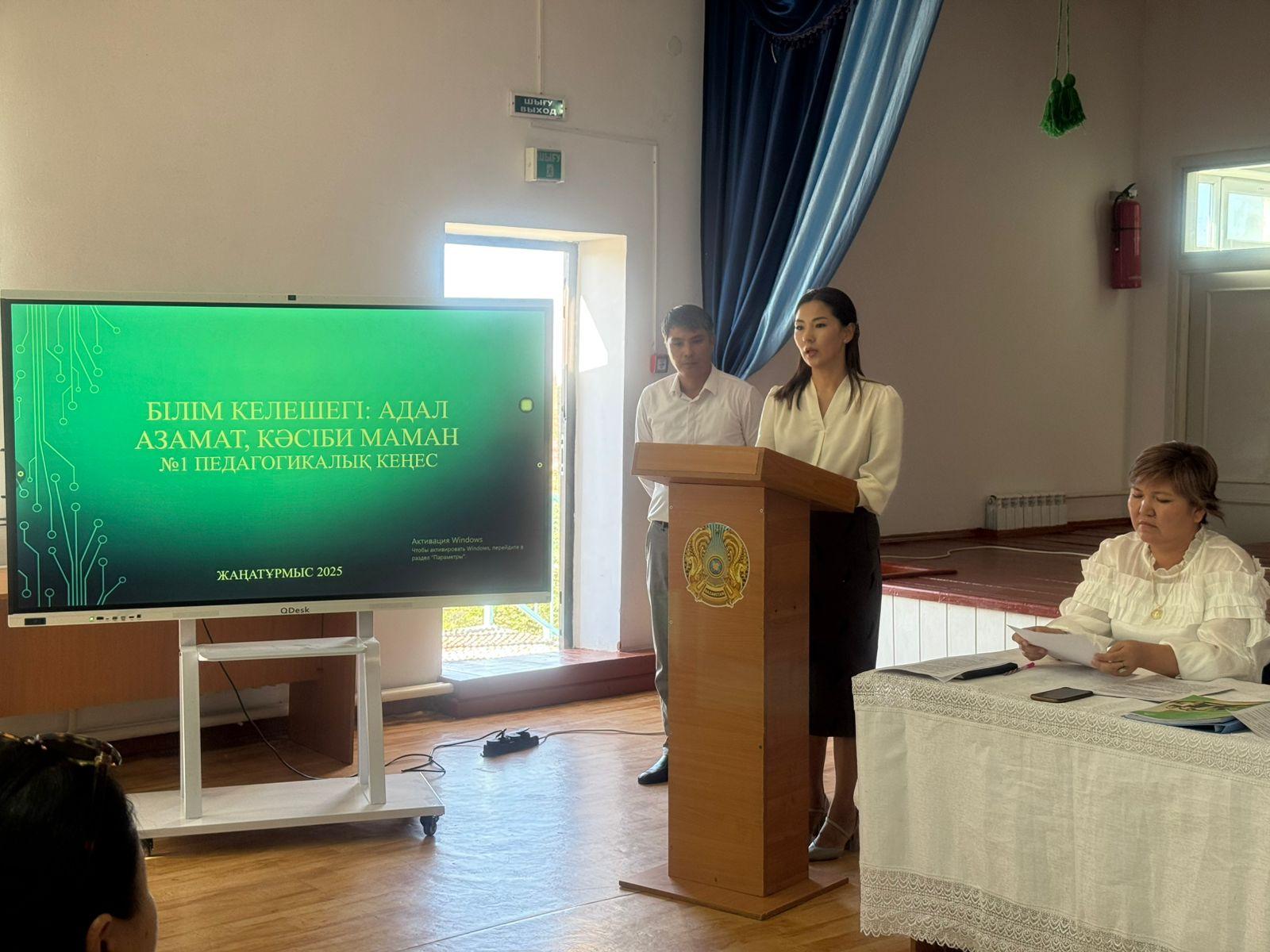 Жаңатұрмыс орта мектебінде №1 Педагогикалық кеңес өткізілді "Білім беру ұйымының 2025-2026 оқу жылындағы білім беру саясаты мен басымдықтары" тақырыбында.