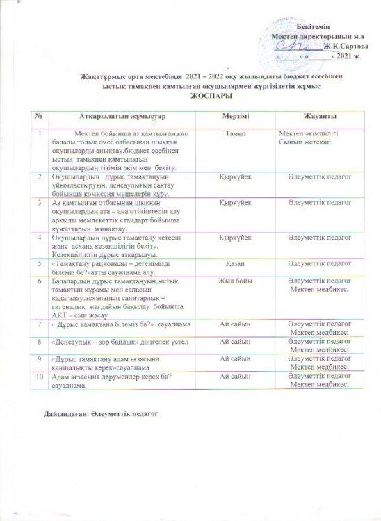 Жұмыс жоспары » сш. Жанатурмыс