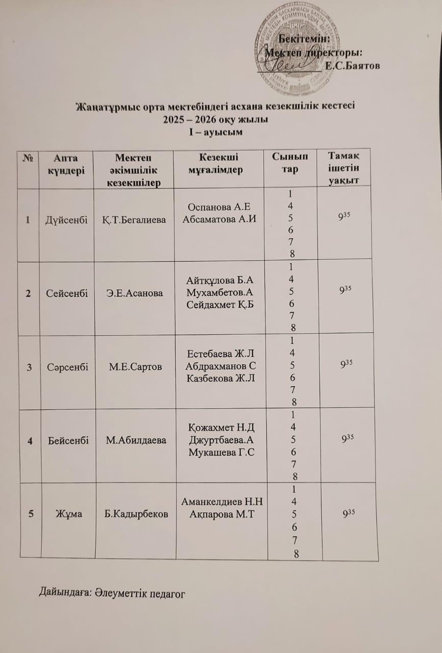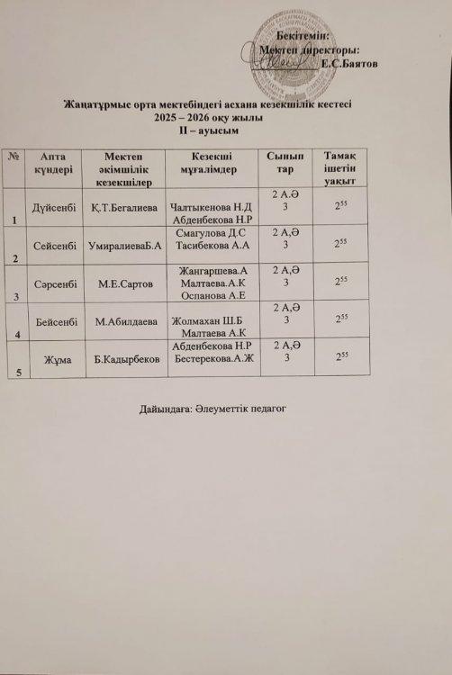 Асхана кезекшілік кестесі » сш. Жанатурмыс