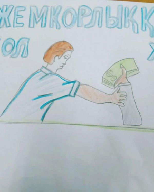 Жаңатұрмыс орта мектебінде Сыбайлас жемқорлыққа қарсы мәдениетін қалыптастыру мақсатында "Адал Ұрпақ" ұйымының белсенді оқушыларының арасында өткізілген ұйымдастырылған сурет байқауы