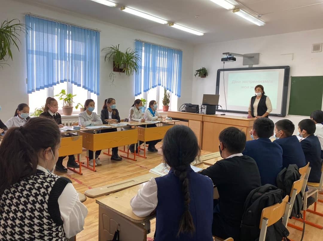 оқушылар арасында тәрбиеге және жастардың теріс пиғылды діни идеологияны тұрақты қабылдамауын қалыптастыруға бағытталған тақырыптық роликтер көрсетілді