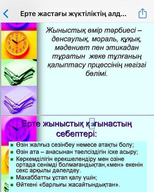 Ерте жүктіліктің алдын алу бойынша ата аналардың жауапкершілігі арттыру мақсатында слайд,бейнеролик көрсетілді.