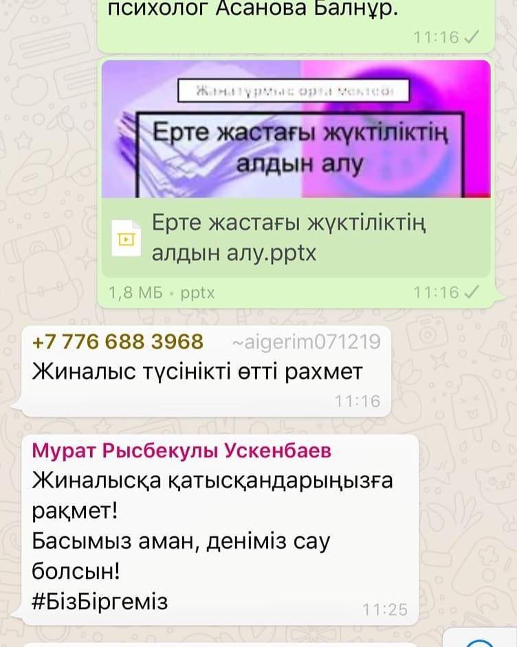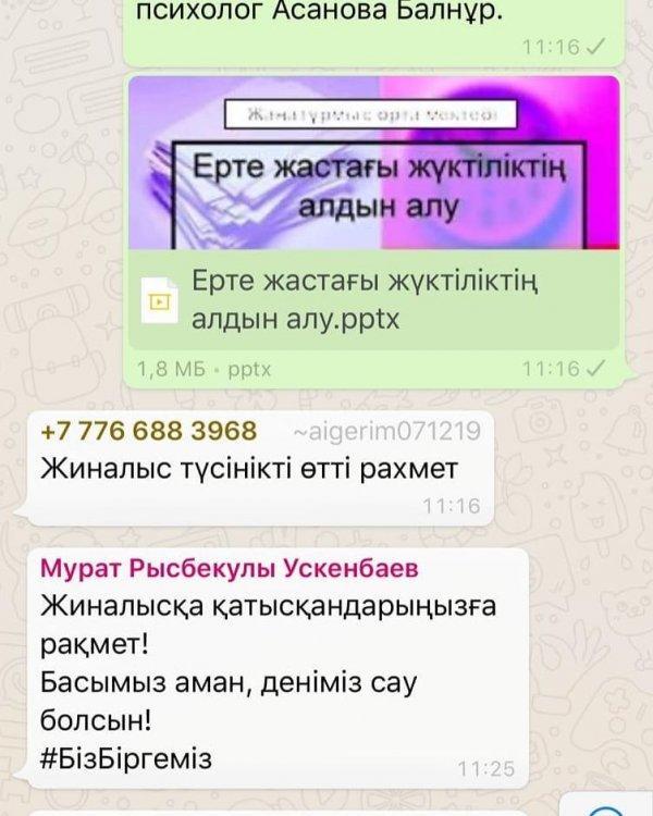 13 мамыр “Жаңатұрмыс”орта мектебінде психолог Асанова Б. ата-аналар жиналысында жазғы демалыс кезінде өз- өзіне кол жұмсаудың,ерте жүктіліктің алдын алу бойынша ата аналардың жауапкершілігі арттыру мақсатында слайд,бейнеролик көрсетілді.