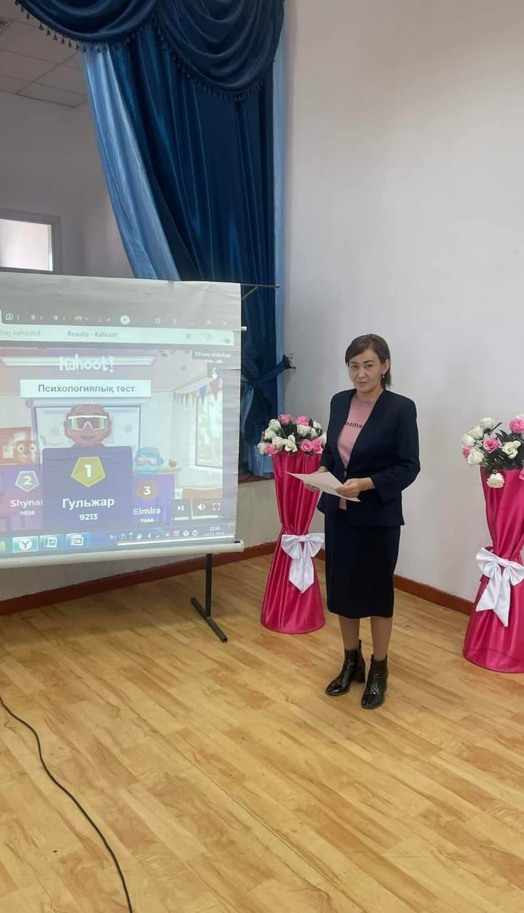 Сонымен қатар,Мектеп психологы: Тасибекова Ә “Kahoot” платформасы арқылы тренинг ұйымдастырды.